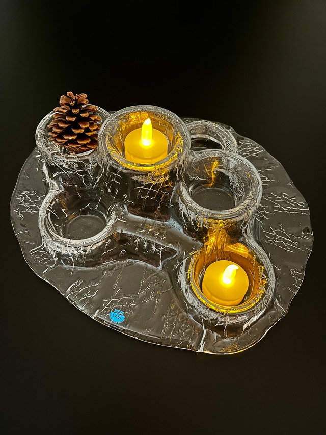 自然の氷のような透明感と凹凸感が特徴の、ハンドメイドアートガラスのキャンドルホルダーです。 キャンドルを灯すと光が反射して幻想的な雰囲気が演出されます。 北欧の冬を感じさせる美しいデザインで、使用用途としてはキャンドルホルダー以外にもインテリアのアクセントとしてもぴったりです! (キャンドルは商品に含まれません) ◆状態 使用感少な目 ◆ブランド Muurla ◆サイズ ホール直径3.5cm 高さ8cm(最頂部) 底辺30cm×17.5cm ーーーーーーーーーーー ヴィンテージ商品につき、経年による傷や色褪せなどがある場合もございます。 味わいとしてお楽しみいただけますと幸いです。 気になる点がございましたら、ご購入前にお気軽にお問い合わせください。 ーーーーーーーーーーー