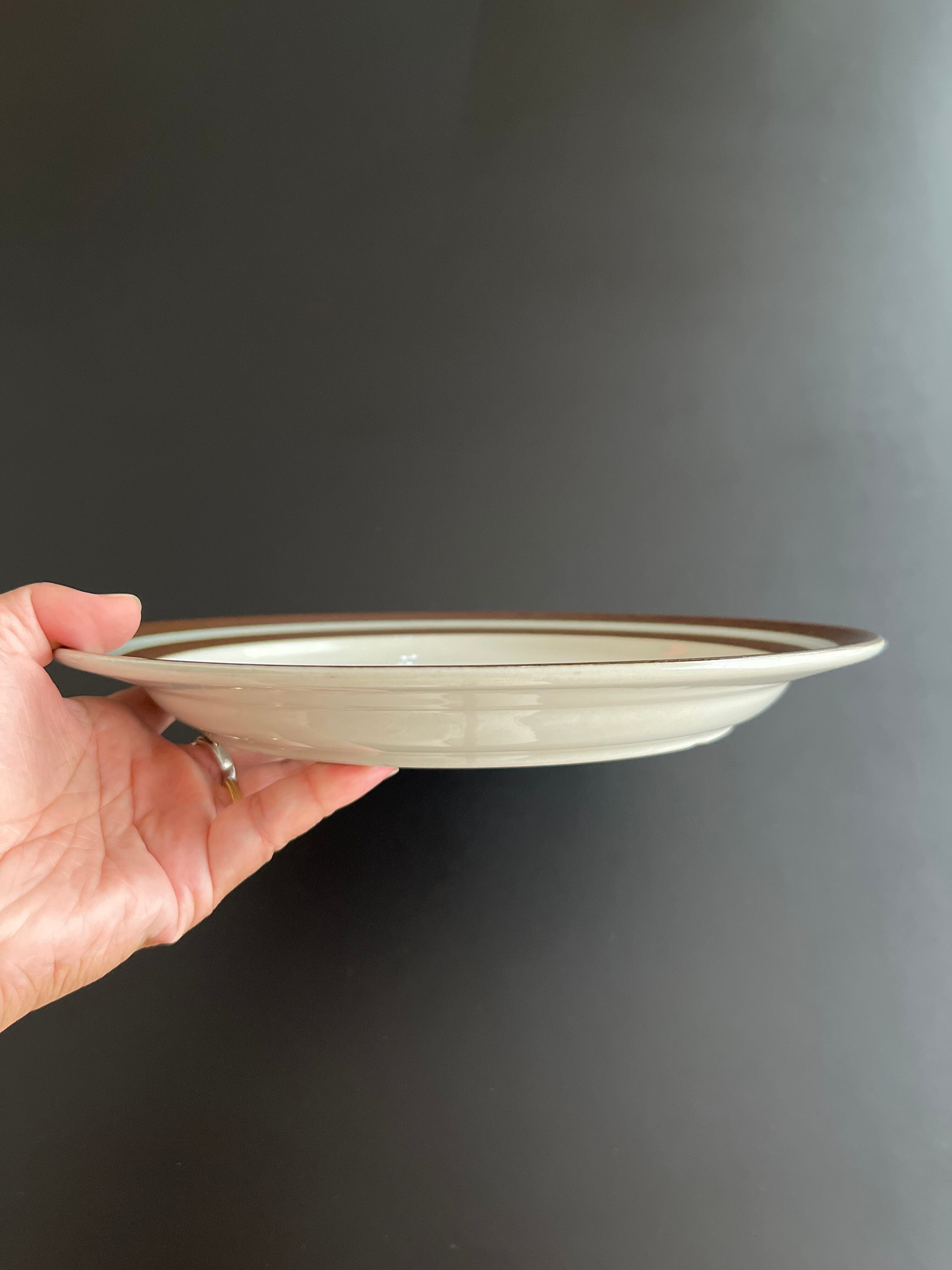縁に施された手書きの装飾は、窯で焼き上げる際の釉薬の具合によって個体差ができ、ひとつひとつのアイテムに独自の表情を持っているのが特徴。