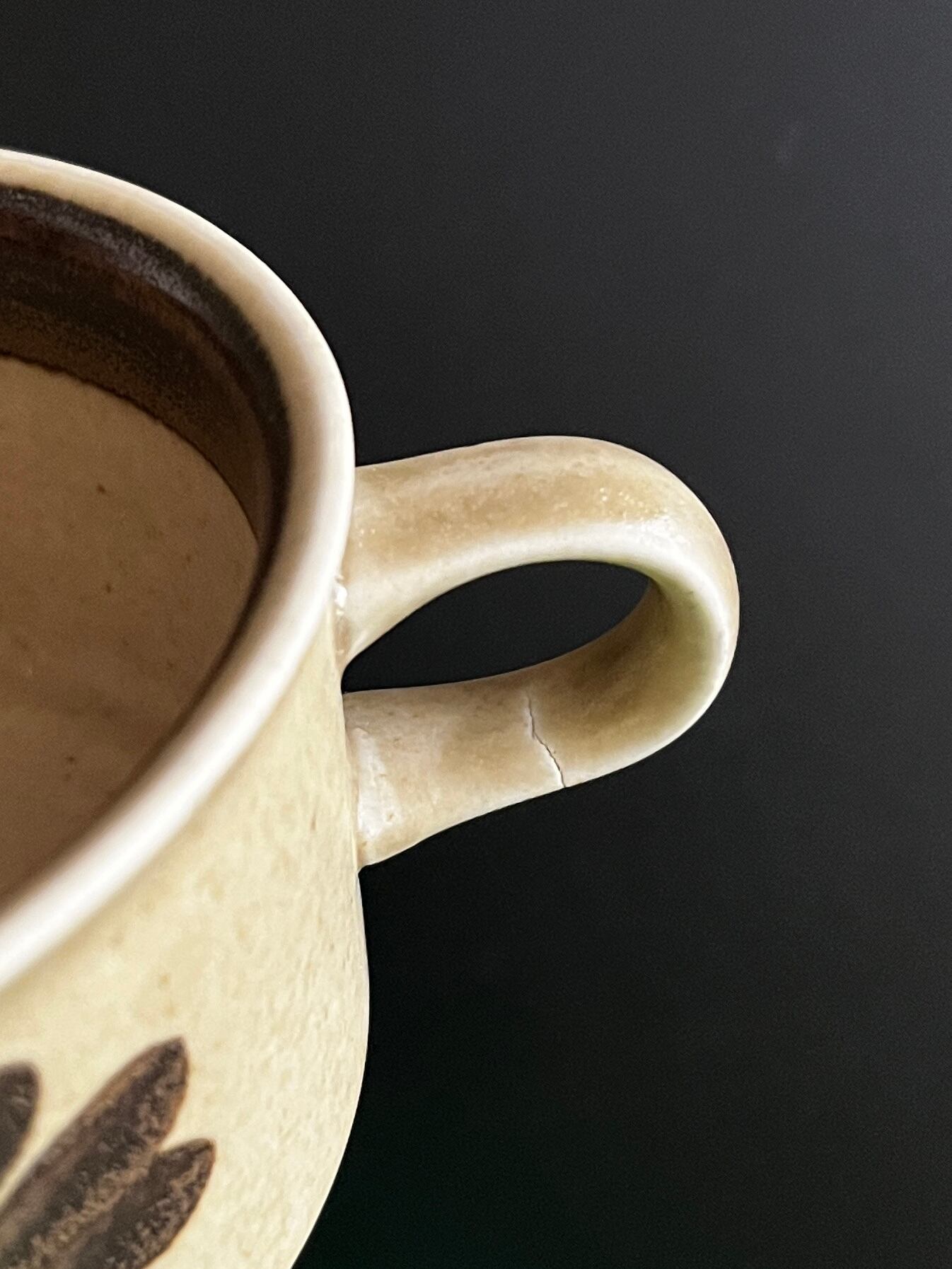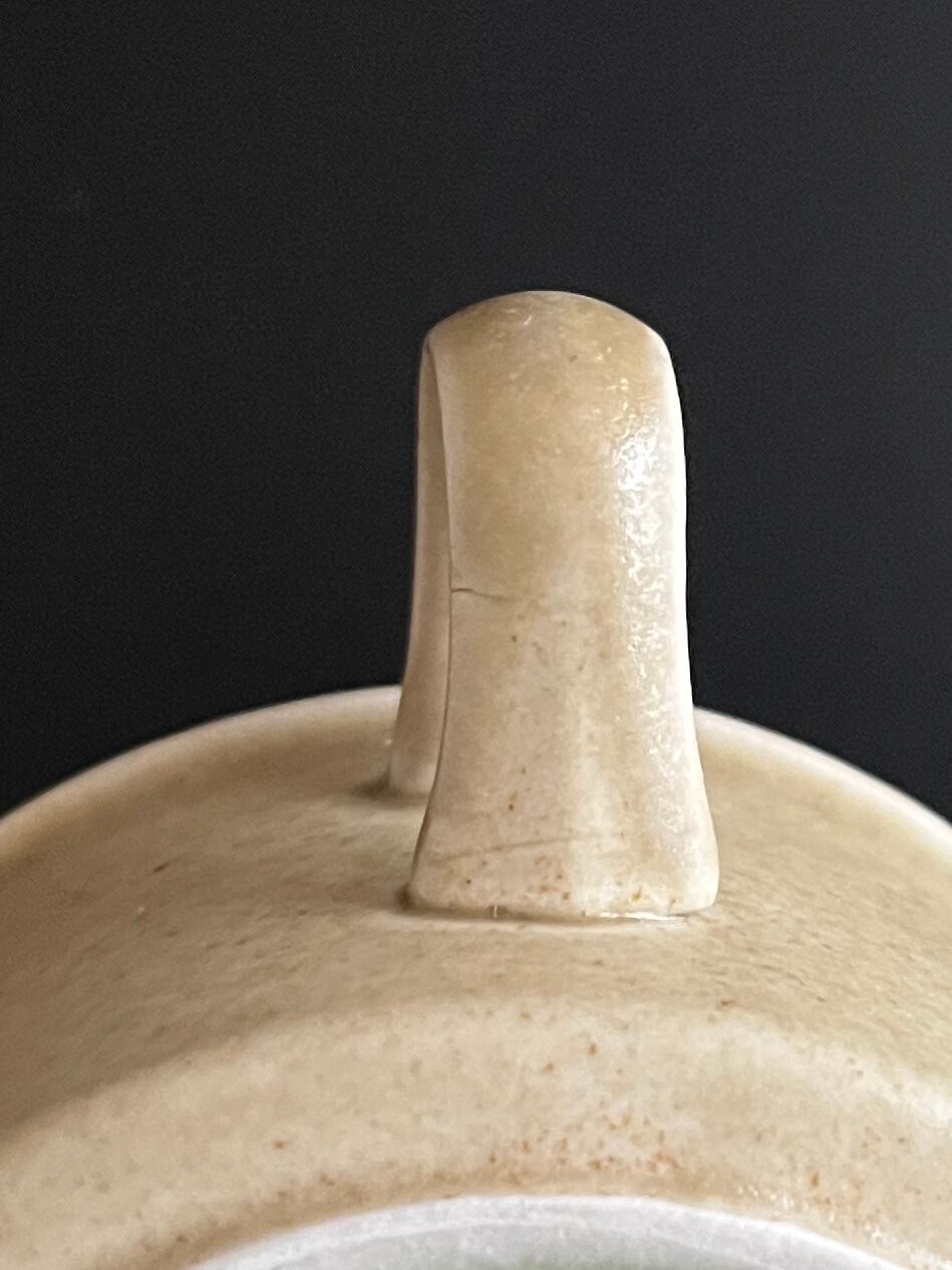 表面にほんのりマット感があり、深みのあるオリーブグリーンとブラウンのグラデーション釉薬が使用されています。