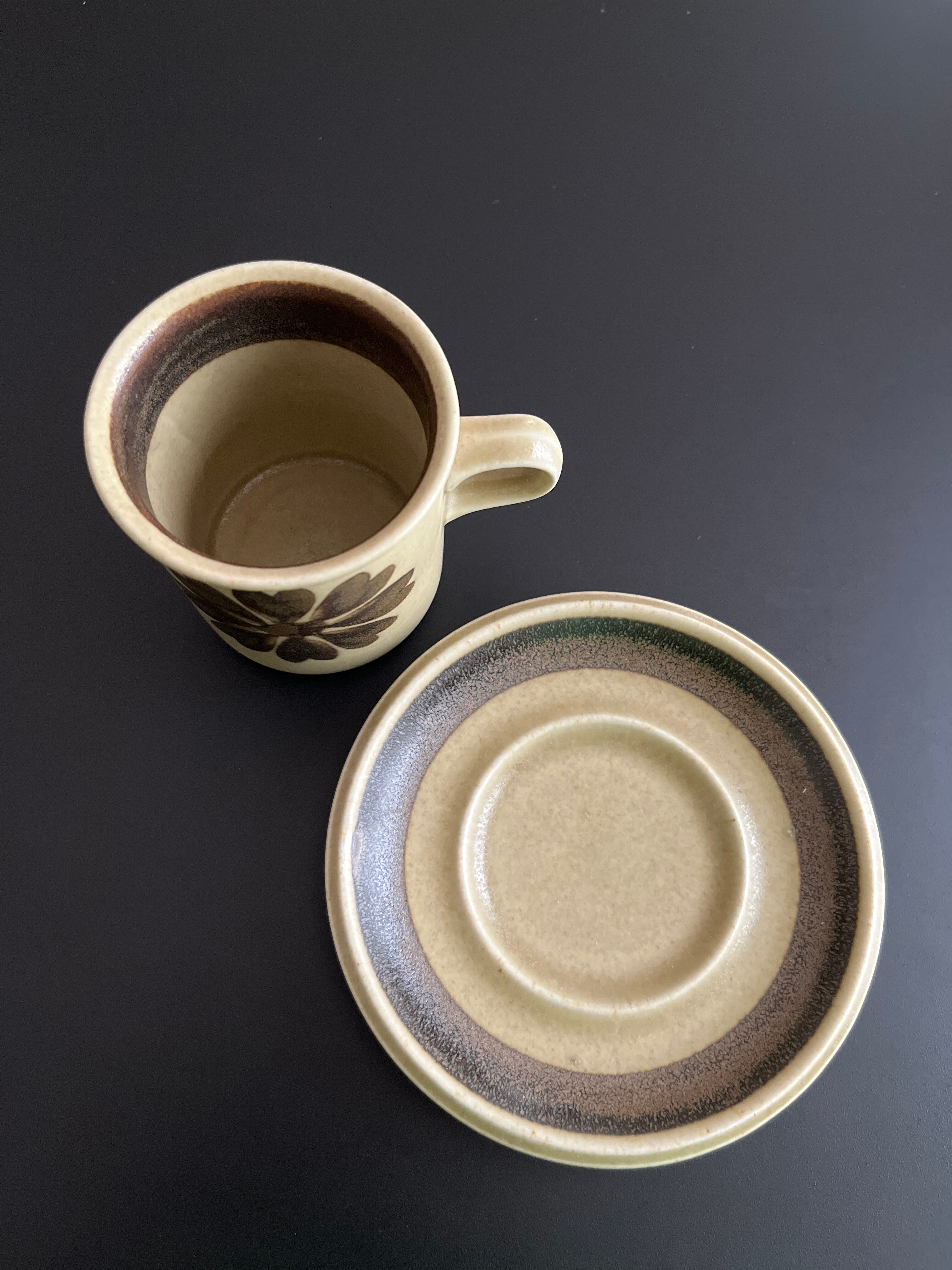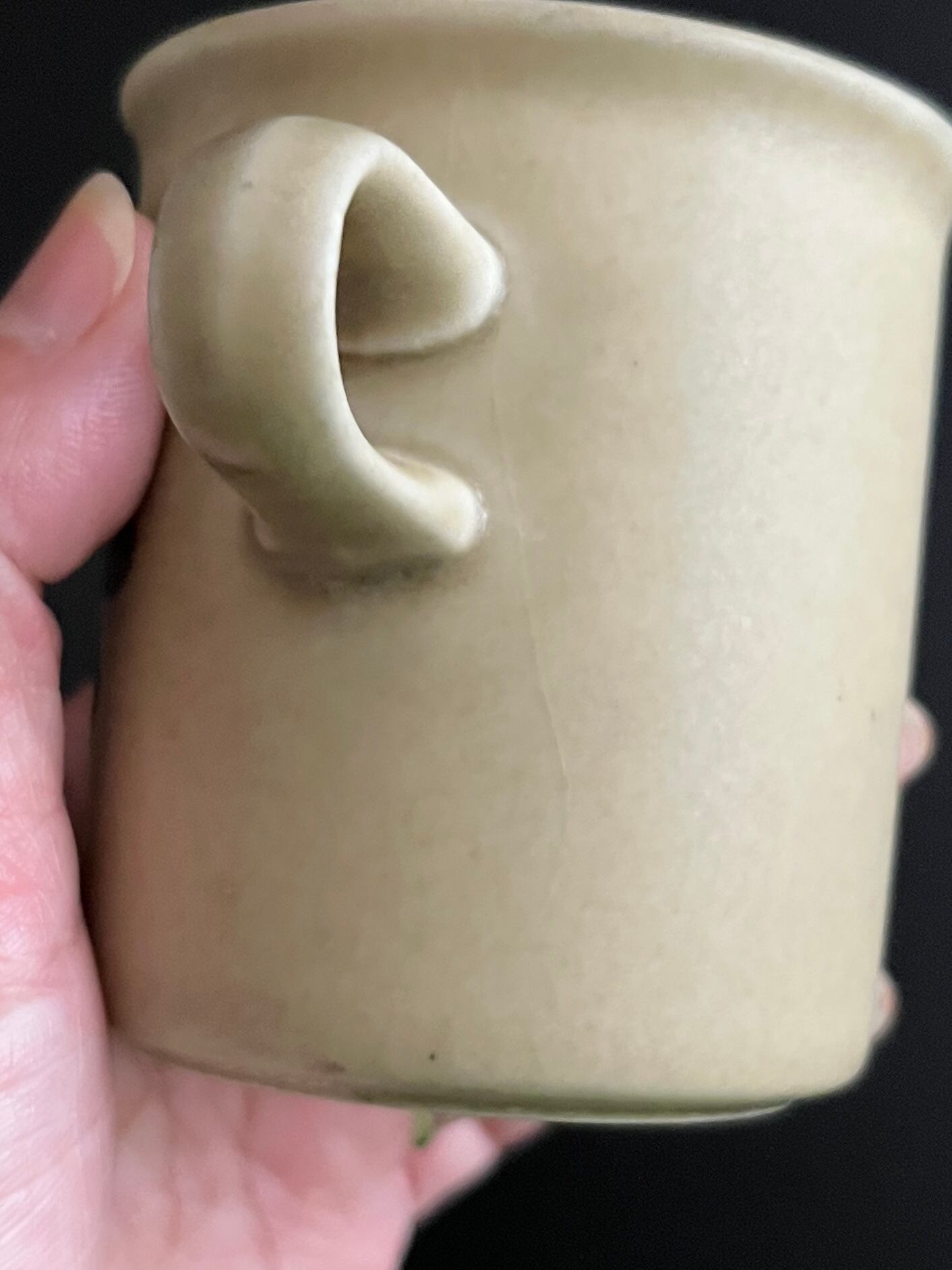 表面にほんのりマット感があり、深みのあるオリーブグリーンとブラウンのグラデーション釉薬が使用されています。
