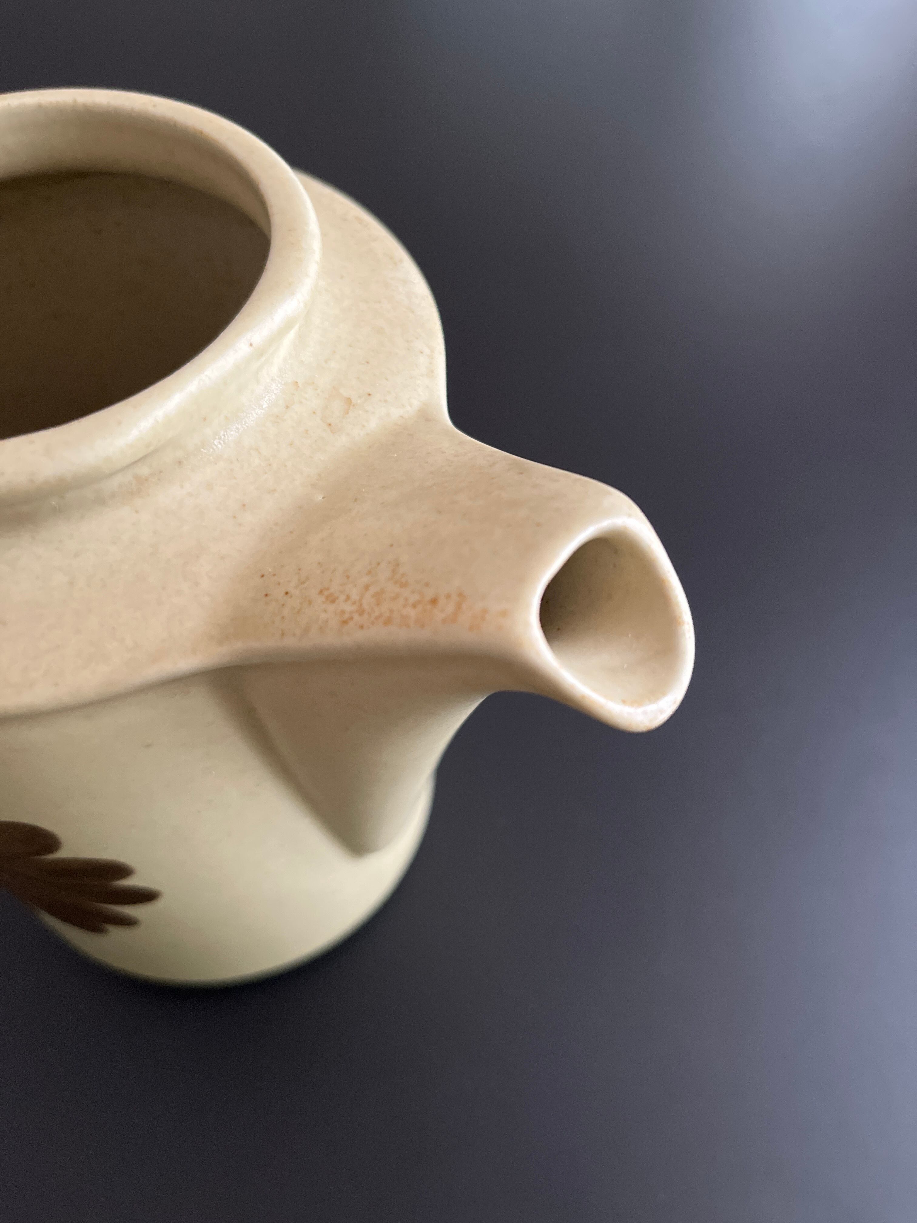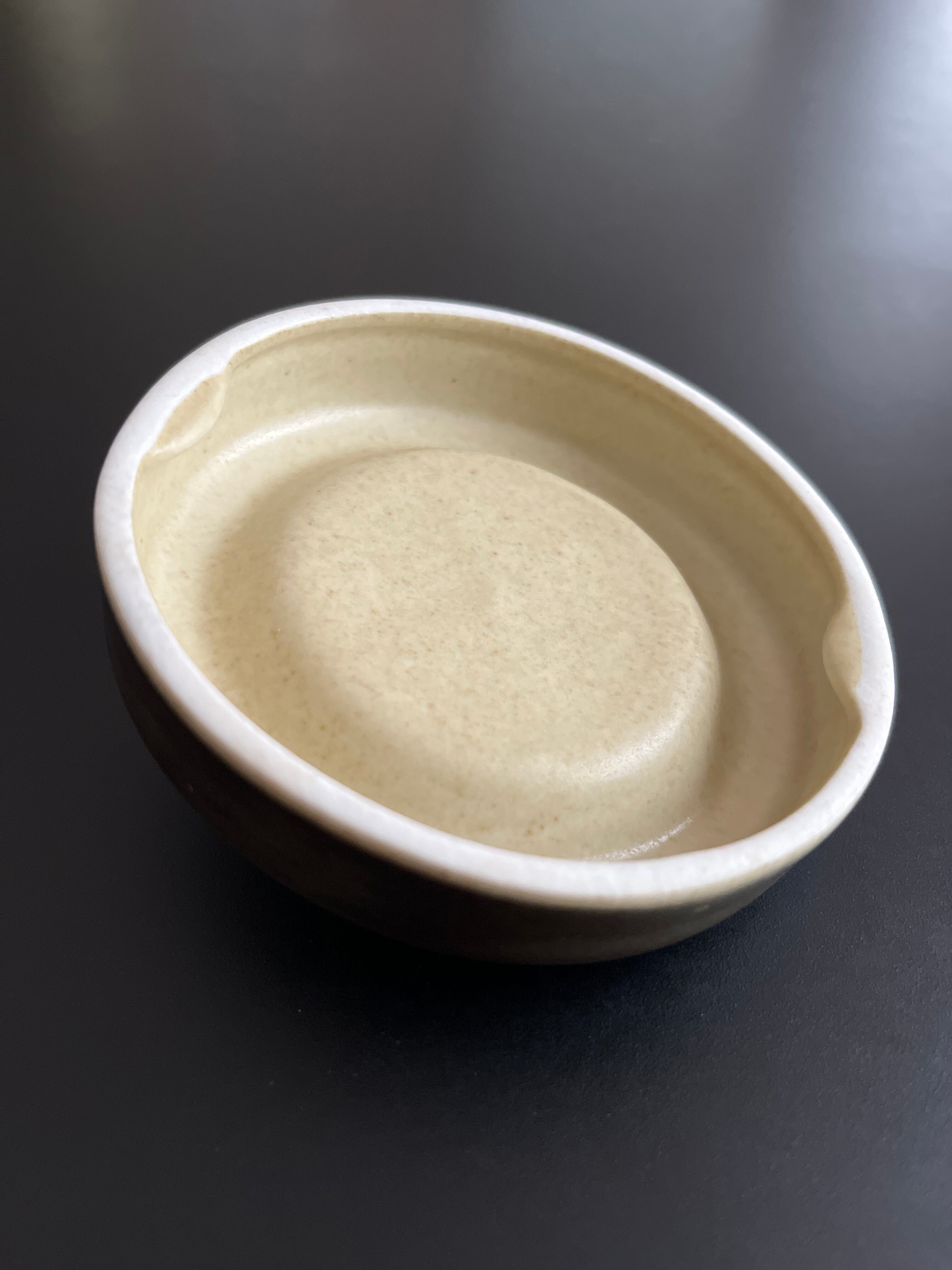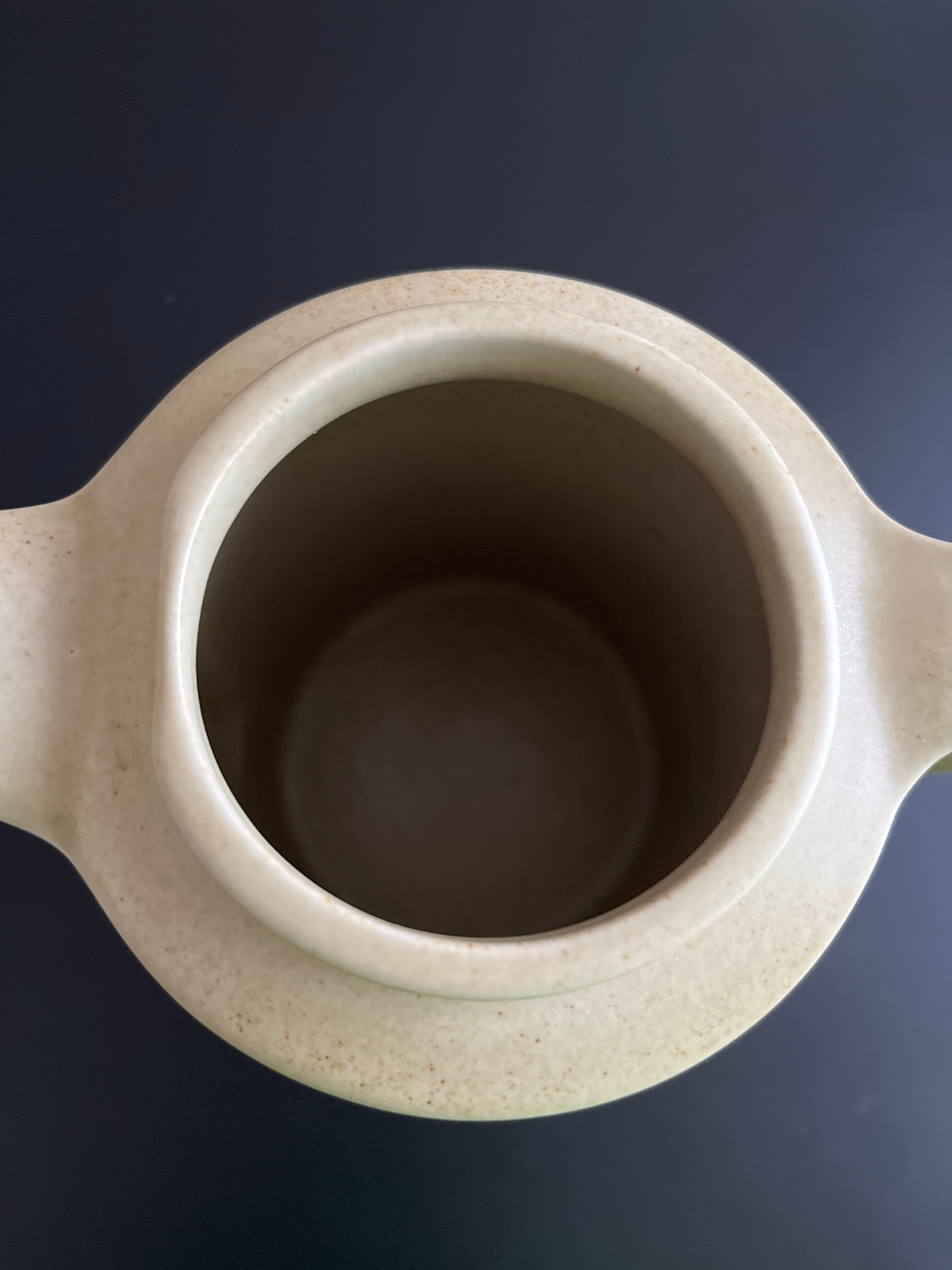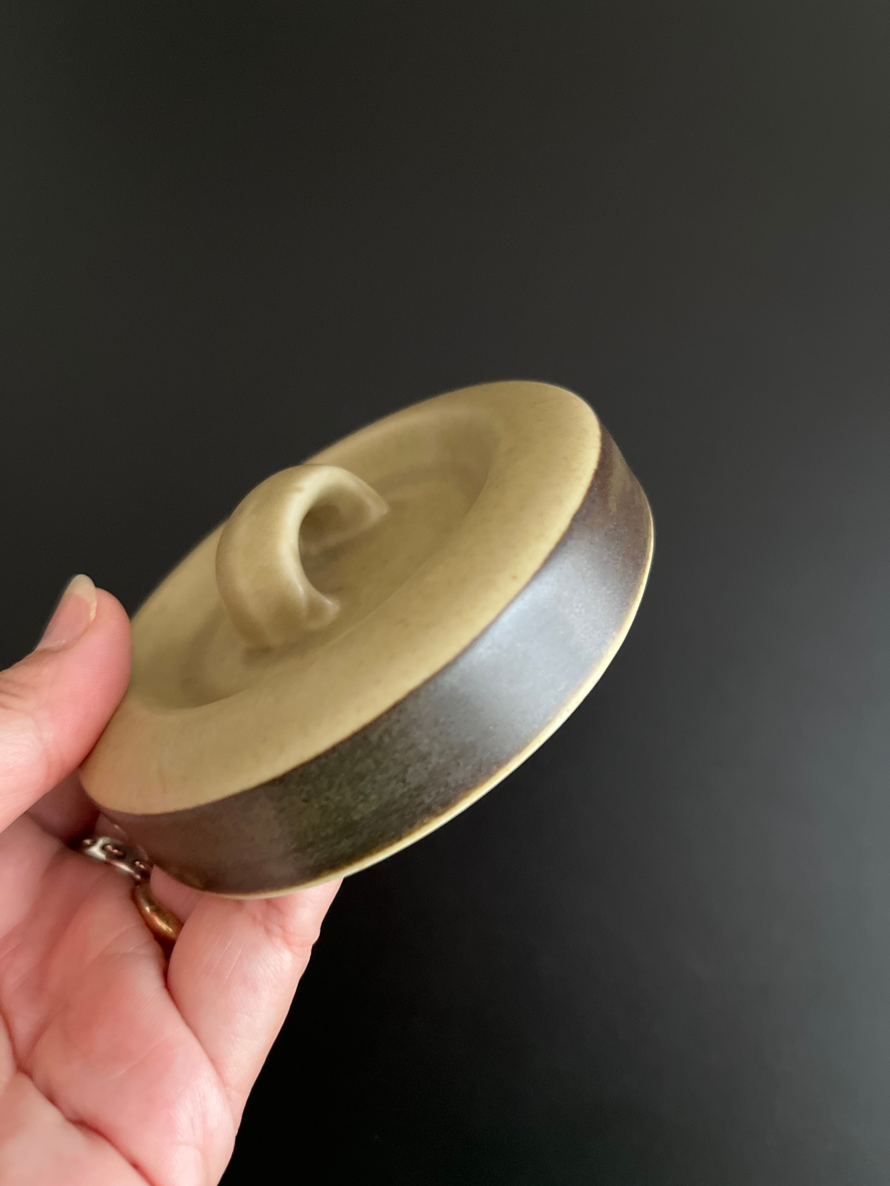 表面にほんのりマット感があり、深みのあるオリーブグリーンとブラウンのグラデーション釉薬が使用されています。